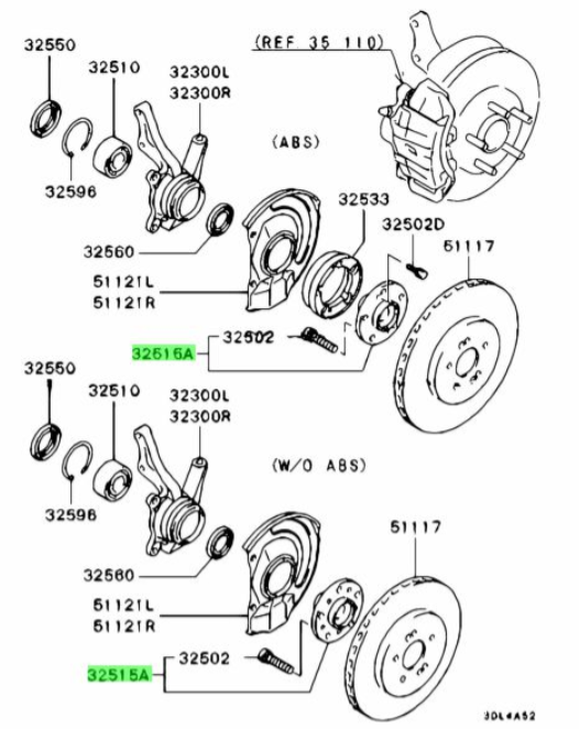 Ensamblaje de maza de rueda delantera (Hub Assy, Front Wheel) para Mitsubishi 3000GT, Diamante, Debonair
