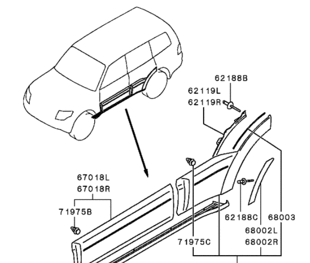 Guarnecido o moldura de la puerta trasera derecha para Mitsubishi Pajero/Montero IV (V8, V9) fabricados a partir de 2007