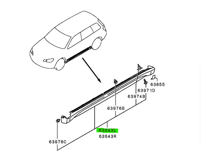 Kit de deflector de aire lateral izquierdo (Air Dam Kit, Side, LH) para Mitsubishi Outlander