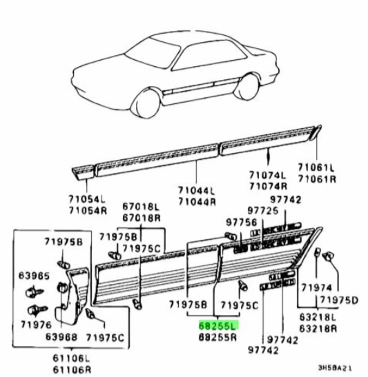 Moldura o guarnición de la puerta trasera izquierda (Garnish, Rear Door, LH) para Mitsubishi Galant / Eterna