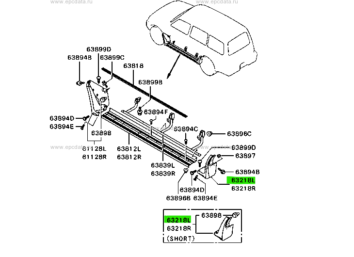 Moldura o extensión del panel lateral trasero izquierdo (Garnish, Qtr Panel, LH) para Mitsubishi Pajero / Montero