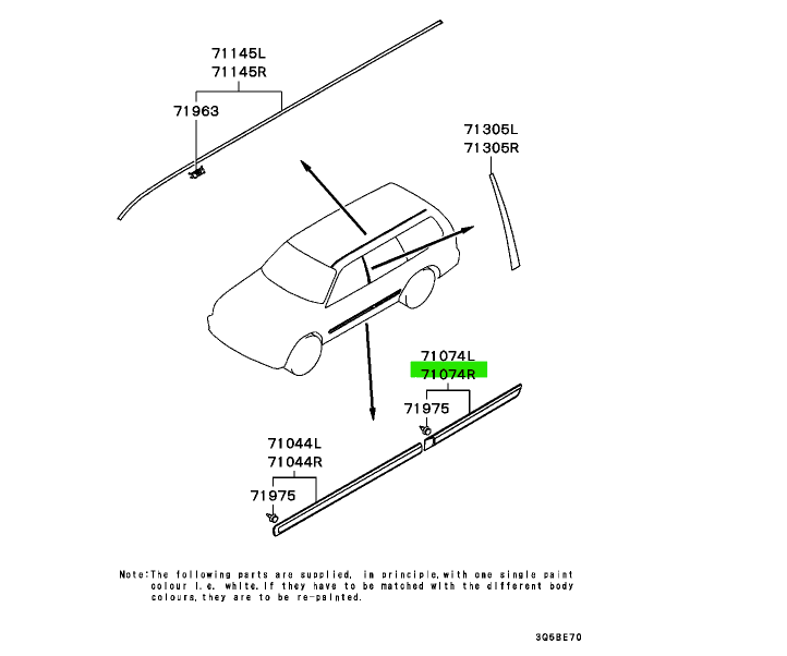 Moldura protectora de puerta trasera derecha (MOULDING, RR DOOR PROTECT, R) para Mitsubishi Montero Sport / Pajero Sport