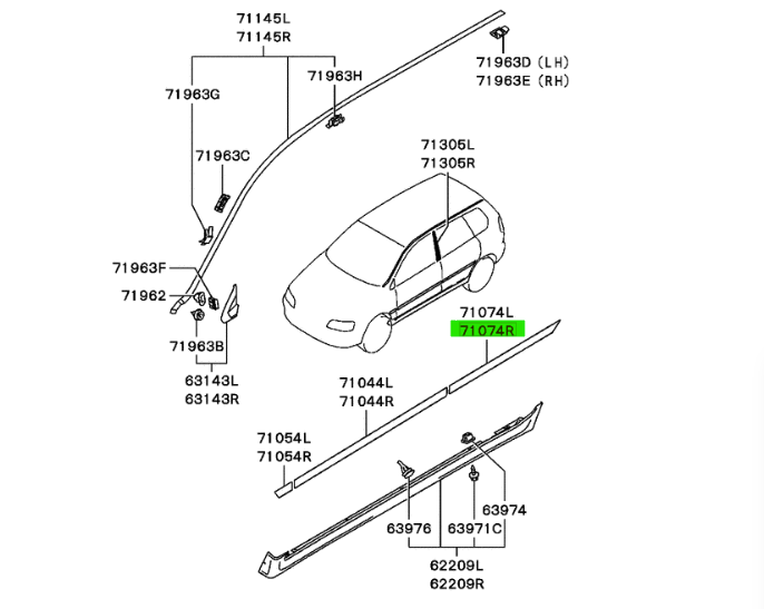 Moldura o guarnición protectora de la puerta trasera derecha para Mitsubishi Space Star