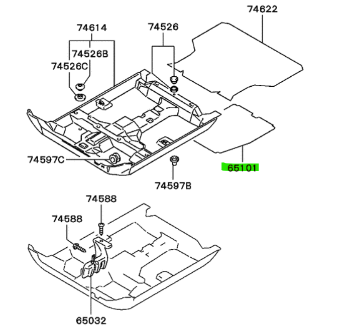 Tablero del piso de carga (board, cargo floor), para Mitsubishi Lancer y Mirage, fabricados aproximadamente entre julio de 1991 y marzo de 1993.